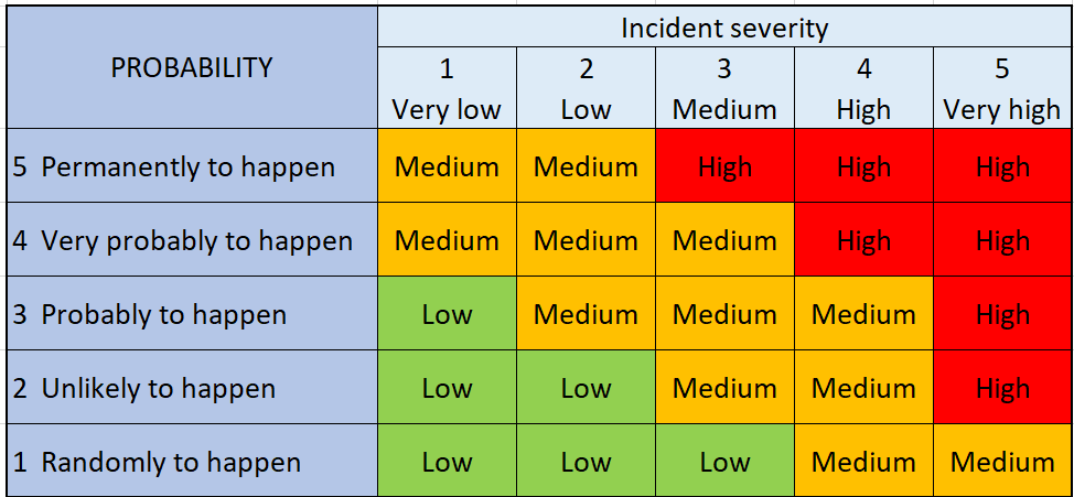 For better risk seriousness visualization, use risk matrix. There are 2 axis on the matrix. One representing probability and second severity.
